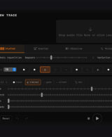 Sounds are saved as a visual collection, with each version generating a unique thumbnail derived from the audio’s spectral content. The architecture is nondestructive — originals are never modified, and every transformation branches as a new version you can return to, adjust, or push further.